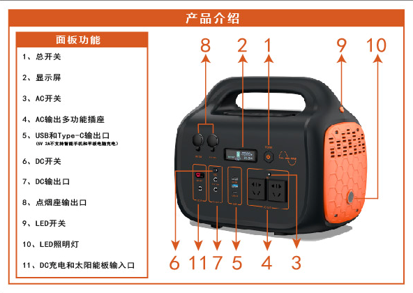 - Den støtter lading og utlading på samme tid. Den har et bredt spekter av bruksområder. Den kan brukes som en online UPS-strømforsyning eller som en utendørs nødstrømforsyning. Den kan møte innendørs medisinsk utstyr, små skrivere, forskjellige lamper, små fisketankvarmere, bærbare datamaskiner og utendørs camping. Den brukes når belysning og strømforsyning er nødvendig i anledninger som fotografering, branntiltak, nødredning og katastrofehjelp.