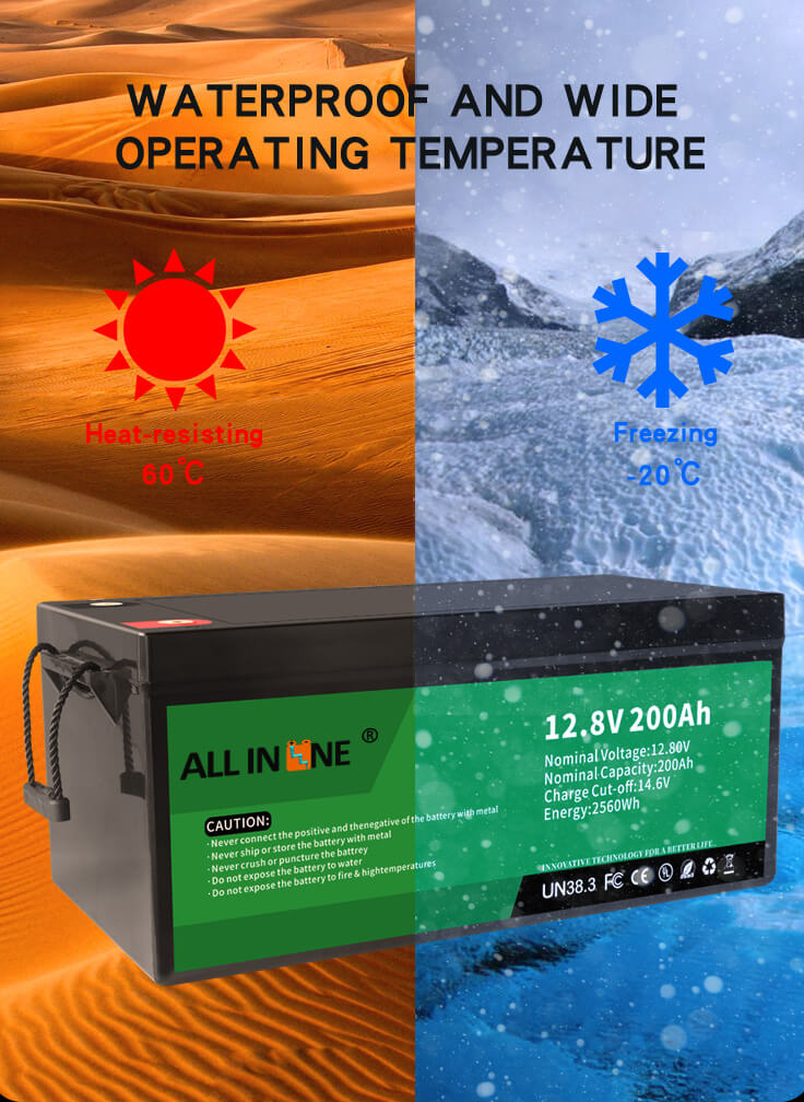 4. Bred arbeidstemperatur: LiFePO4 batteri har et bredt arbeidstemperaturområde på -20 ° C ~ 60 ° C.