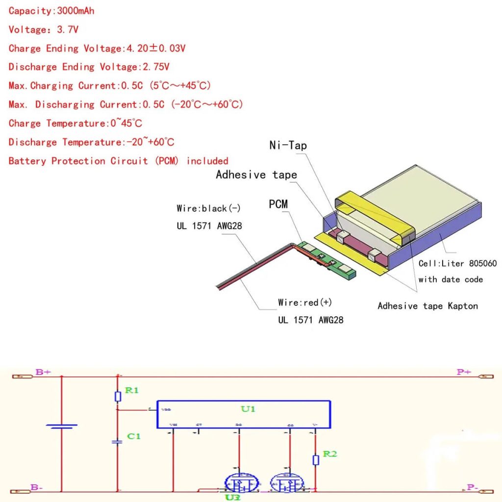 | Kapasitet: | 3000 mAh | Charge Voltage: | 3.7-4.2V |