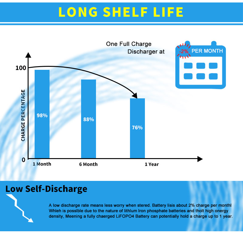 Vi tilbyr 2 års garanti for alle våre batteripakker. Vi sørger for minst 2000 sykluser for LiFePO4-batteripakken, noe som betyr at det etter 2000 @ 80% DOD fortsatt er rundt 60% kapasitet igjen. Du kan bruke den i minst 5 år for normal 1 gang lading og utladning hver dag.