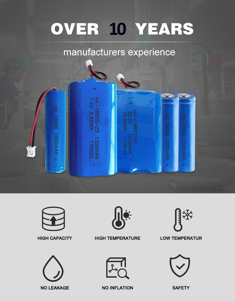 (1). Stor kapasitet. 18650 litiumbatterikapasitet er vanligvis mellom 900mAh - 2600mAh. 18650 litiumbatteripakke kan tilfeldigvis bryte gjennom 5000 mAh.