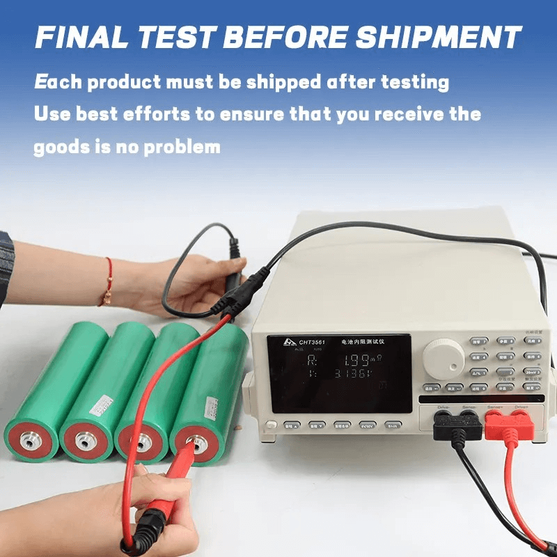 Vi vil teste all batterispenning og intern motstand før forsendelse.
