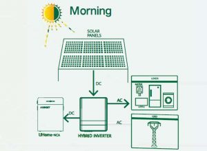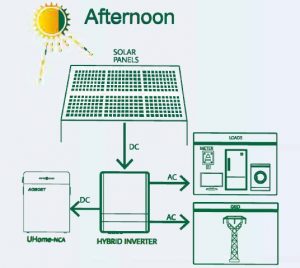 ![]() | Batterier driver vekselstrømmen når solen går ned. |