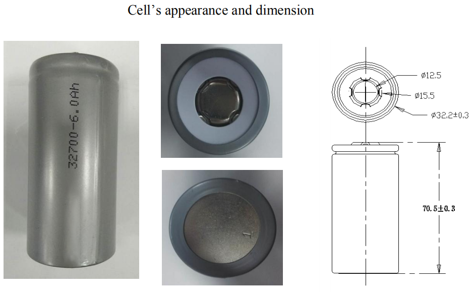 Cell SIze | Diameter: 32,2 ± 0,3 mm, maks 32,5 mm | Høyde: 70,5 ± 0,3 mm, maks. 70,8 mm |