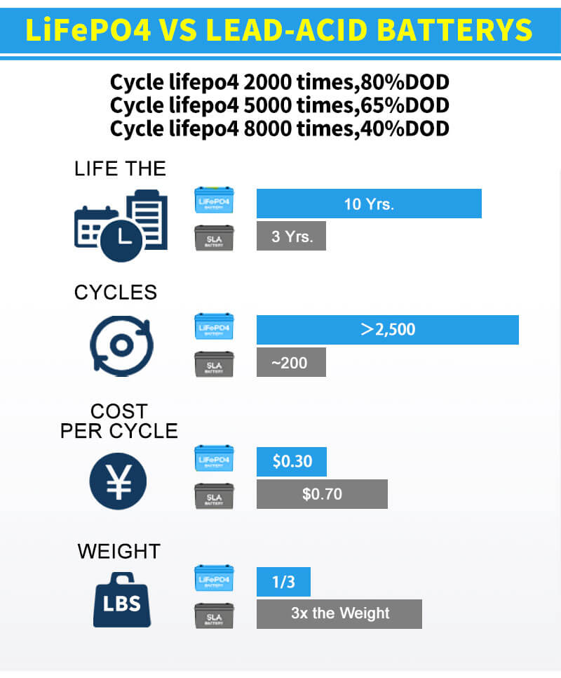 ◆ Ved hjelp av teknologien til litium jernfosfatcelle, overlegen sikkerhet, tusenvis av sykluser, 100% DOD, under normale forhold.