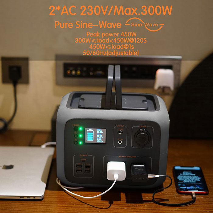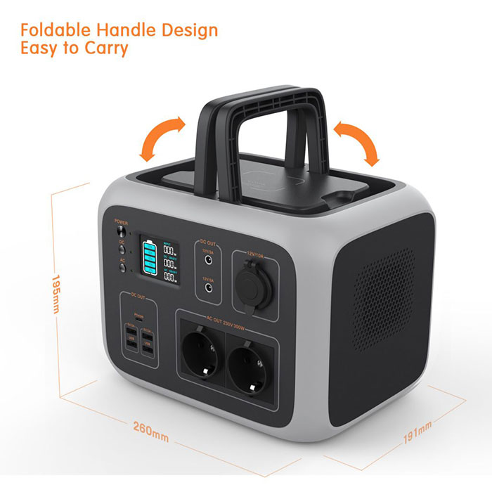 500Wh bærbar generator kraftstasjon Strømforsyning med ganske 300W DC / AC vekselretter, DC / AC / USB utganger for utendørs campingreiser