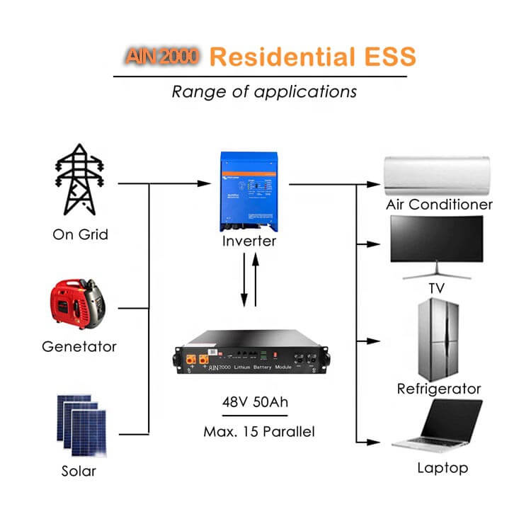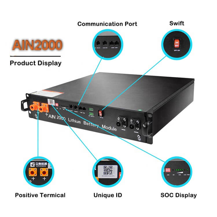 1.AIN2000 48v solsystembatteri er utviklet med høy ytelse LFP-celle 3,2V 50Ah og EV standardstruktur for å garantere sikkerhet og enestående levetid.